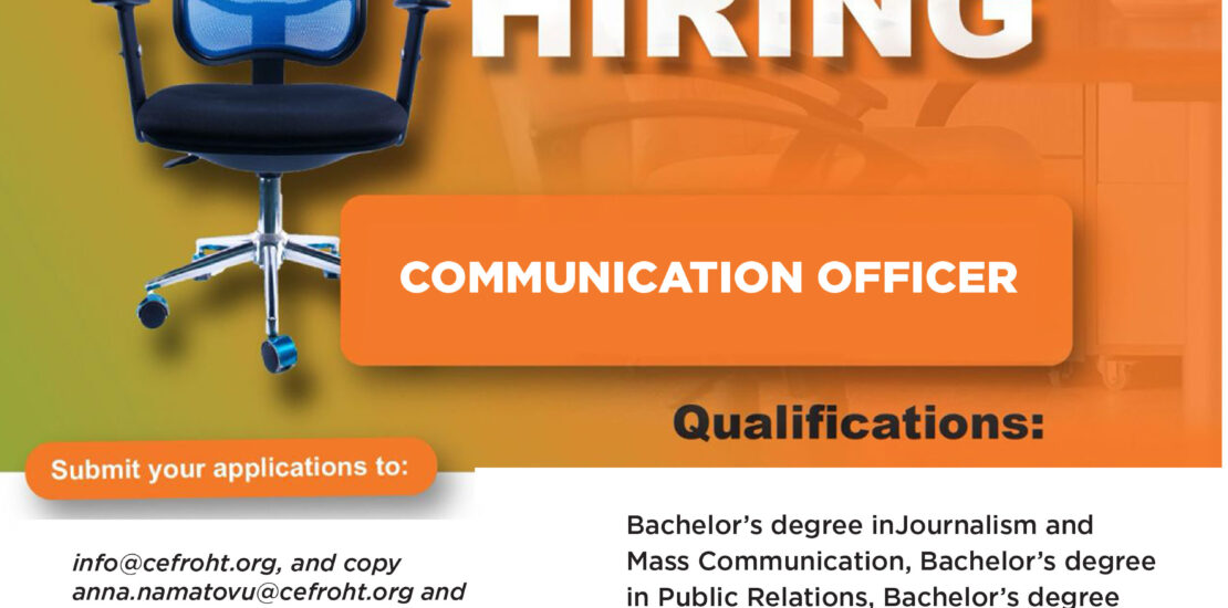 The communication officer is tasked to implement communication strategies to promote the organization’s mission, programs, and impact. The position requires planning and creating all communication materials, managing the organization’s brand strategy and visibility, as well as leading the documentation of program activities for CEFROHT. These tasks require creativity in design and production, the ability to play a leading role in all communication-related activities, and the ability to work closely with different teams at the field level, program/project officers/coordinators to collect content at community, national, regional and global level.